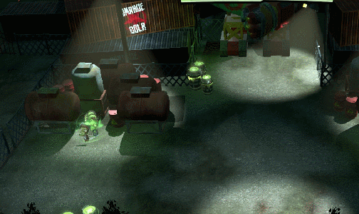 The truck is constantly moving through the open area, tracking the player, and it revs up to run him over when directly in front of him. Again with scripting, we are tracking where the player is located and the truck will usually take the shortest path to get to the player.